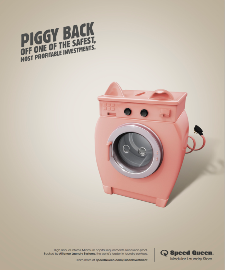 B2B communications don’t have to be dull and dry. With the opposite approach great results can be obtained. And that’s precisely what we did when Alliance Laundry Systems, one of the global leaders in industrial laundromat equipment, came to us to help them communicate the financial benefits of their products and services to their prospective investors and franchisees. The campaign, which included the development of a micro site, posters, trade publication ads and more, significantly surpassed the client’s projections in terms of new sign ups here in the US as well as in Latin America.
